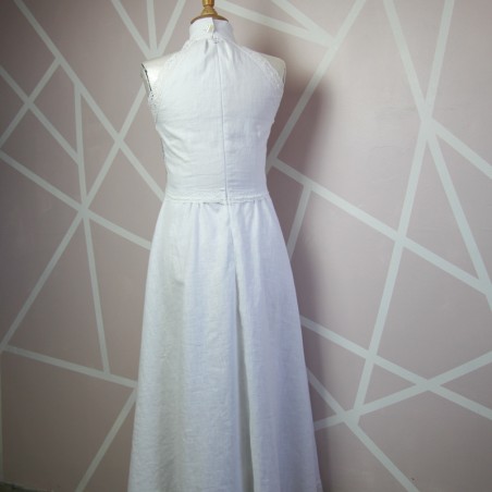 Robe de mariée en lin naturel, brodée à la main avec col halter élégant.
