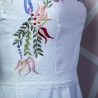Confectionnée dans un lin de haute qualité, cette robe de mariée légère est idéale pour un mariage estival, champêtre ou en plein air. Les broderies délicates, réalisées entièrement à la main, ajoutent une touche poétique et personnalisée, reflet d’un savoir-faire précieux.